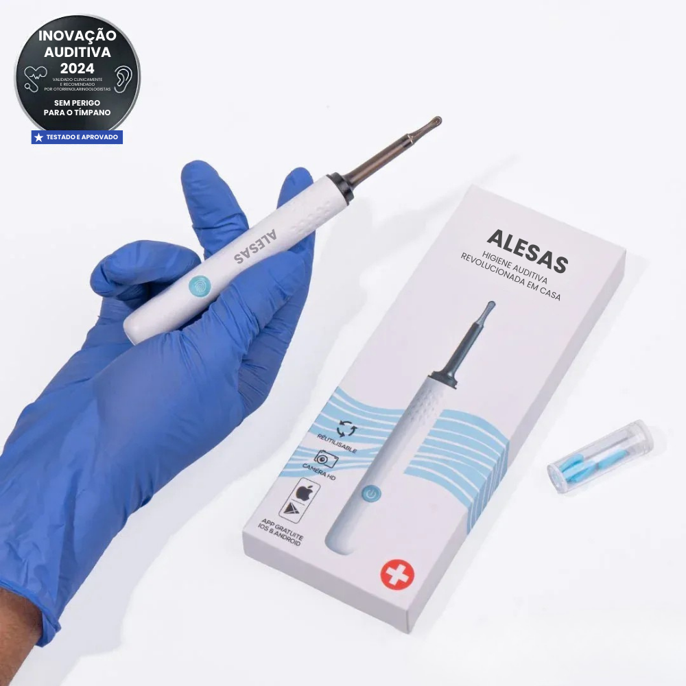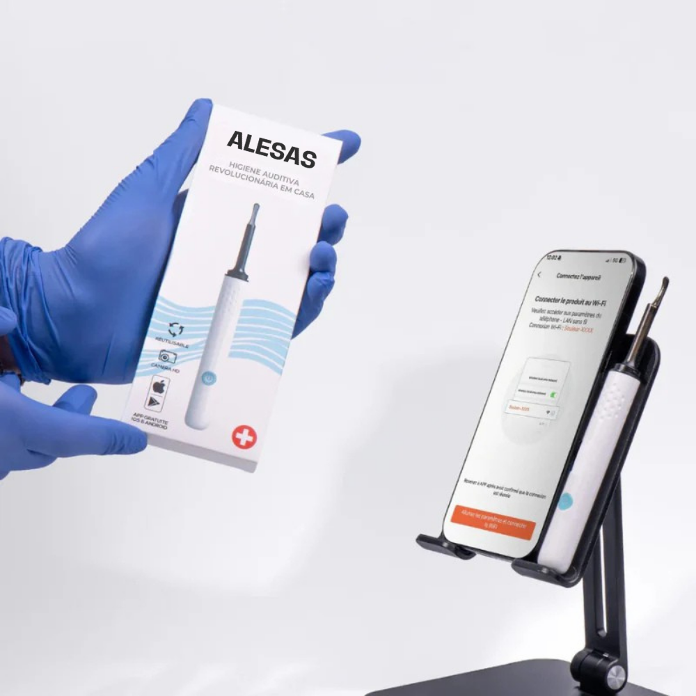 ALESAS destina-se a qualquer pessoa que deseje cuidar da higiene auditiva em casa, com total segurança. Adultos, crianças, famílias — todos podem utilizá-lo. Particularmente útil para quem sofre de obstruções, usa frequentemente auscultadores ou simplesmente quer ver o que está a limpar.