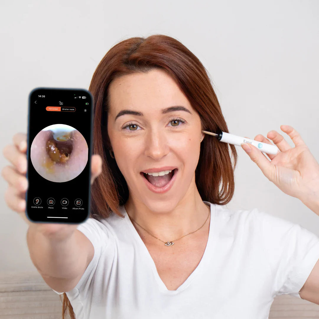 Graças à sua câmara HD 1080p e aos seus 6 LEDs integrados, o ALESAS oferece uma visão ultra nítida do canal auditivo. Pode controlar cada movimento em direto, sem empurrar a cera para mais fundo. É o método mais seguro e satisfatório para uma limpeza perfeita.